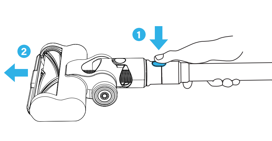 1. Dr眉cken Sie die Entriegelungstaste am Reinigungskopf, um ihn zu entfernen.