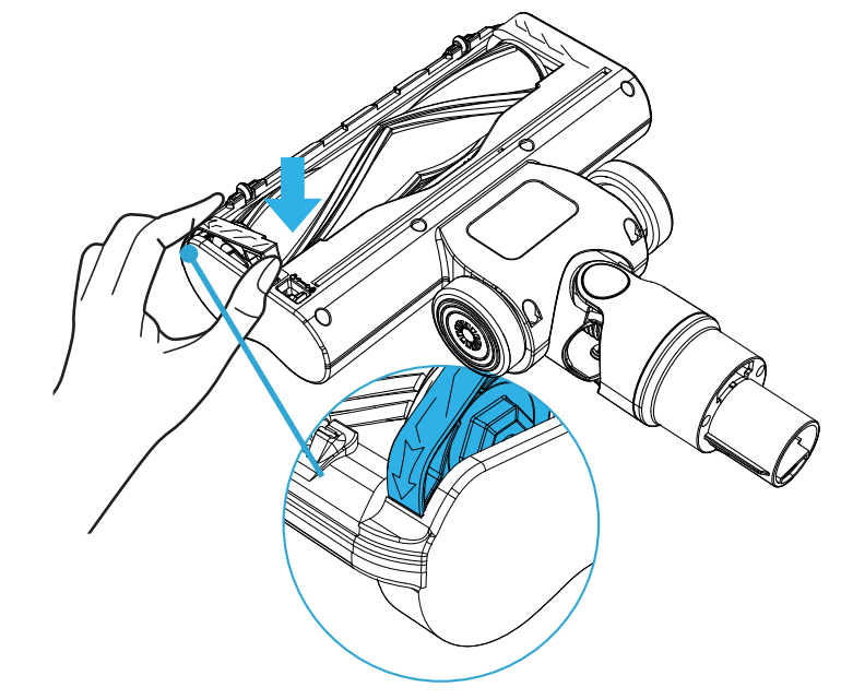 8. Dr眉cken Sie auf die Schnalle. Ein „Klick鈥-Geräusch zeigt an, dass die B眉rstenrolle sicher am Reinigungskopf befestigt ist.
