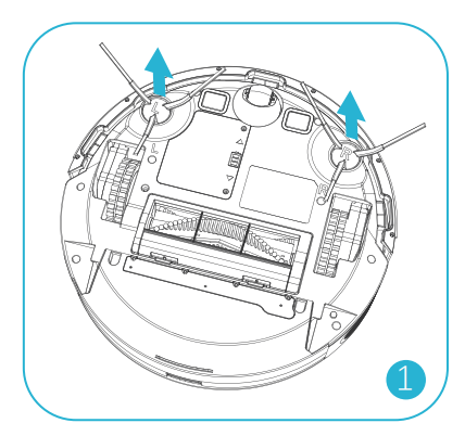 2. Ziehen Sie vorsichtig alle Haare oder Schn眉re ab, die zwischen dem Roboter und den Seitenb眉rsten gewickelt sind.