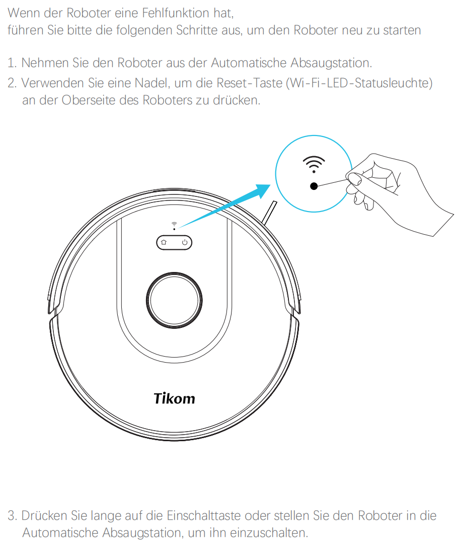 Wenn das Problem weiterhin besteht, kontaktieren Sie uns bitte f眉r Unterst眉tzung unter support.de@tikom.com