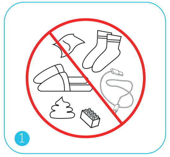 1. Entfernen Sie alle Gegenstände vom Boden, die den Roboterstaubsauger verheddern könnten, wie z.B. Tierkot, Socken, Kleidung, Taschent眉cher, Spielzeug, rutschige Oberflächen und Stromkabel.