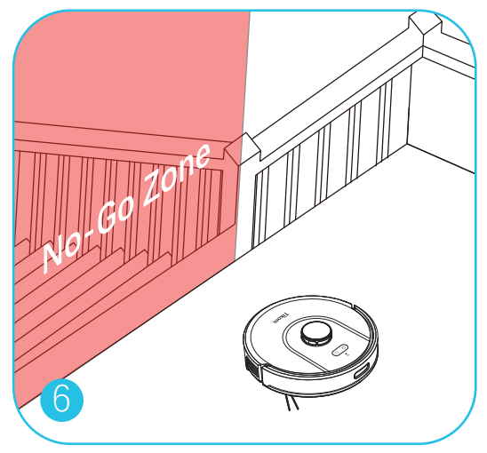Bitte richten Sie solche Bereiche als "No-Go-Zonen" ein oder konfigurieren Sie "Virtuelle Wände" gemäß den Anweisungen auf Seite 39, um zu verhindern, dass der Roboter sich verheddert.