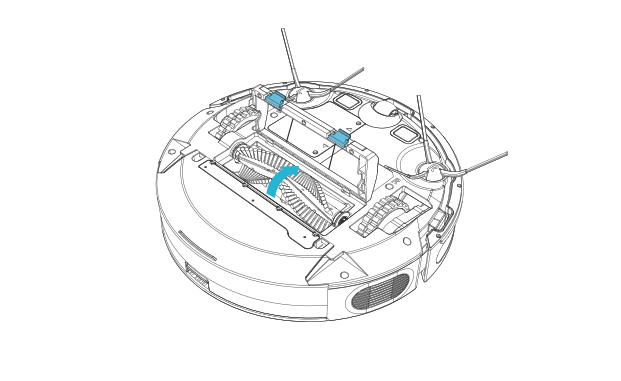 5. Install the Main Brush into the robot, ensuring to pay attention to the direction. Insert the fixed protruding end first,then click it into place.