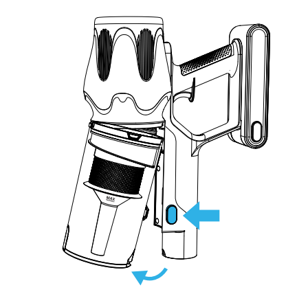 1. Push "Dust Cup Release Button" to take off Dust Cup from Vacuum Cleaner.