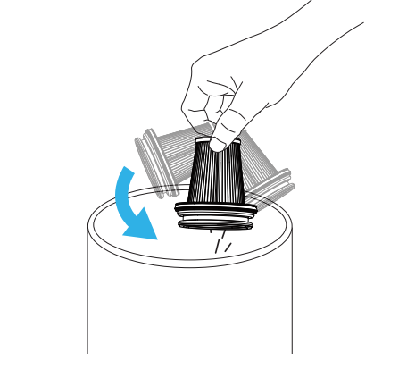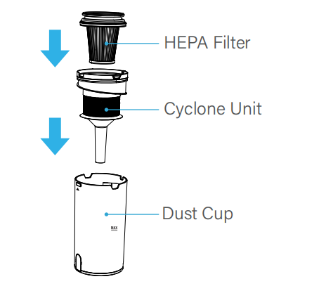 9. Install Cyclone Unit and HEPA Filter into the Dust Cup.