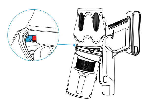 12. Push the dust cup toward the main unit until you hear a click, indicating that the dust cup is properly installed.