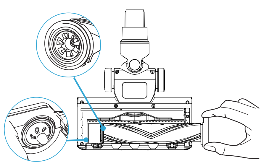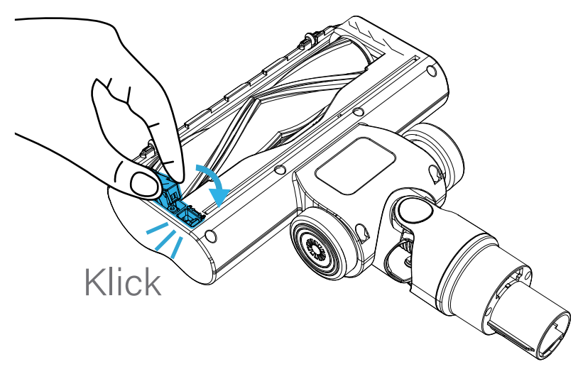 8. Dr眉cken Sie auf die Schnalle. Ein „Klick鈥-Geräusch zeigt an, dass die B眉rstenrolle sicher am Reinigungskopf befestigt ist.