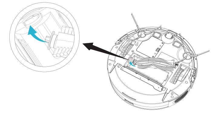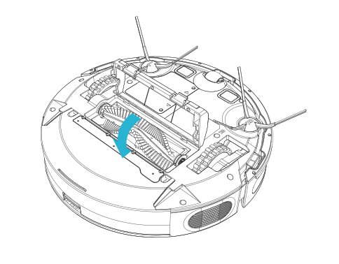 5. Setzen Sie die Hauptb眉rste wieder in den Roboter ein. Achten Sie dabei auf die richtige Ausrichtung. Setzen Sie zuerst das feststehende Ende ein und klicken Sie es dann ein.