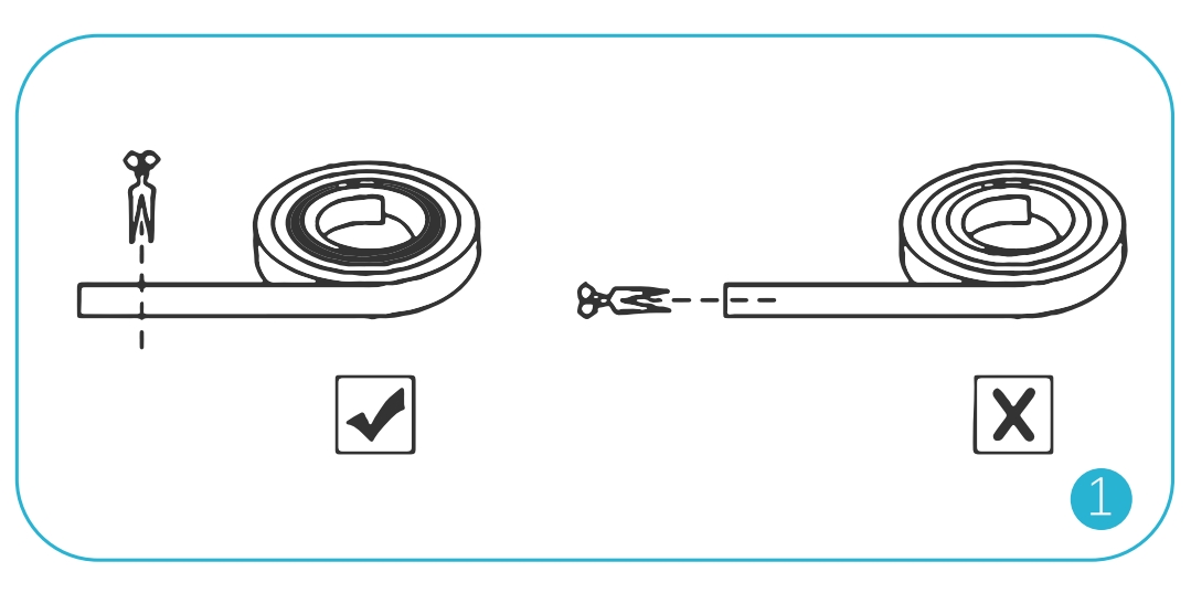Hinweis: Der Streifen kann nur vertikal geschnitten werden, um seine Länge anzupassen, nicht horizontal, um seine Breite zu verändern. Messen Sie die Länge vor dem Schneiden genau.