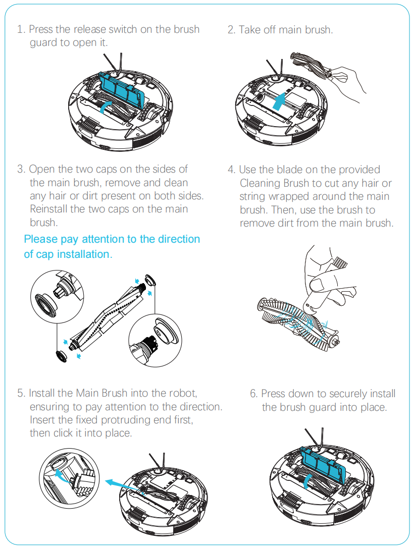 Power Off robot and take off main brush guard, please clean main brush.