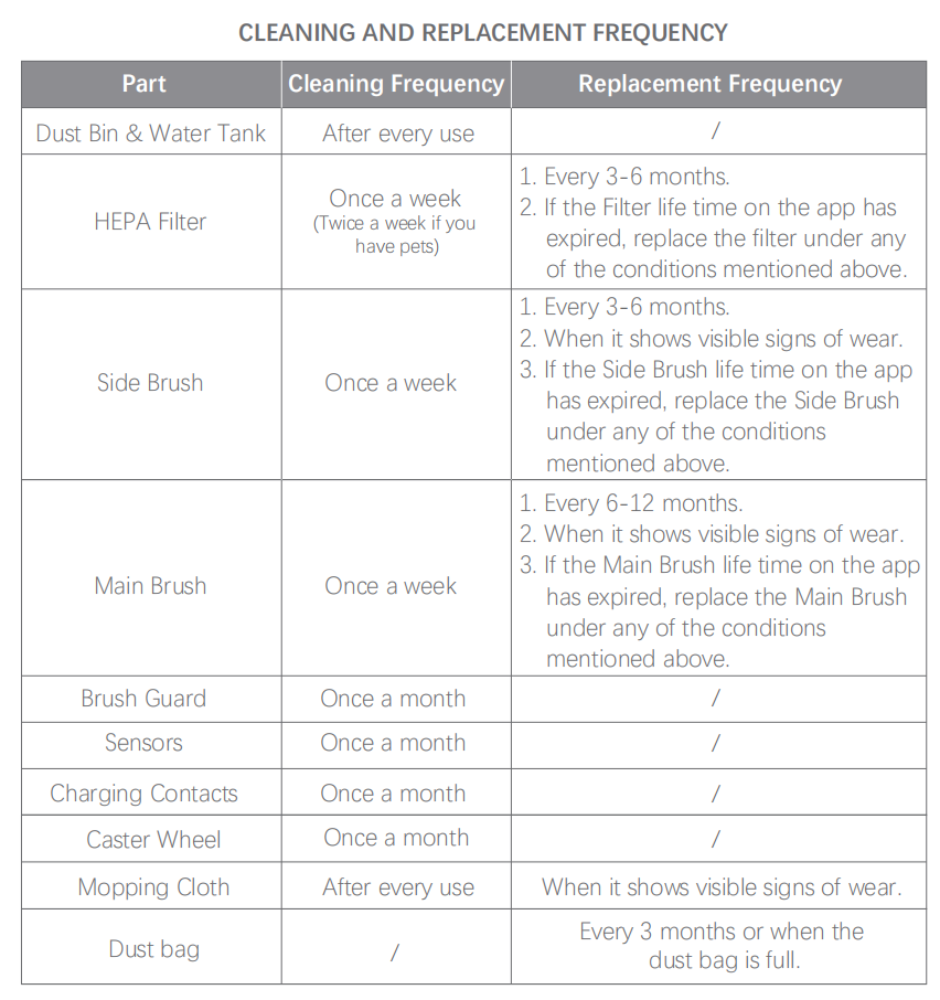 Cleaning and Replacement Frequency [L8000 Plus&L8000 Pro]