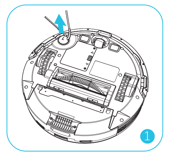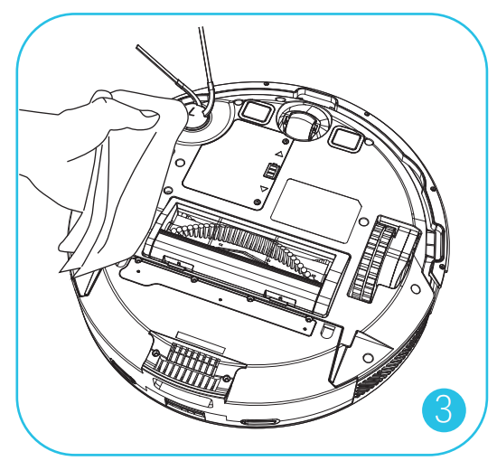 2. Carefully unwind and remove any hair or string that is wrapped around the robot and the side brush.