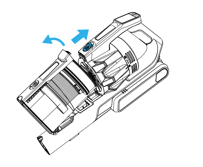 1. Push "Dust Cup Release Button" to take off Dust Cup from Vacuum Cleaner.