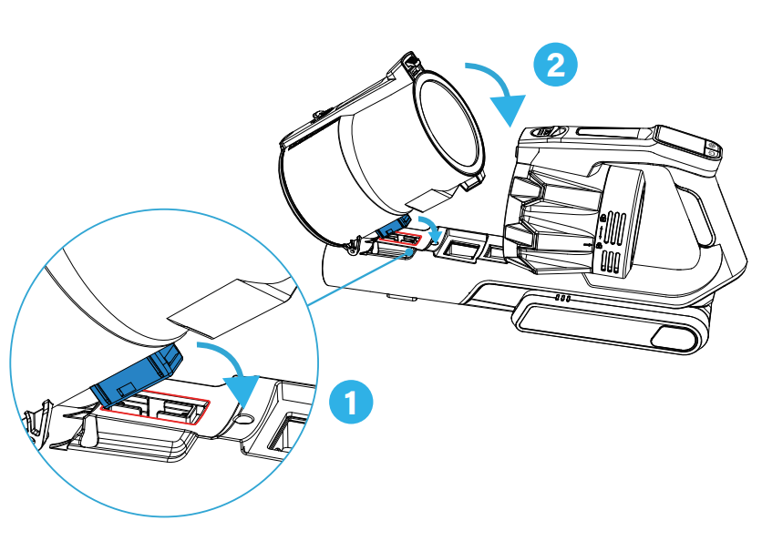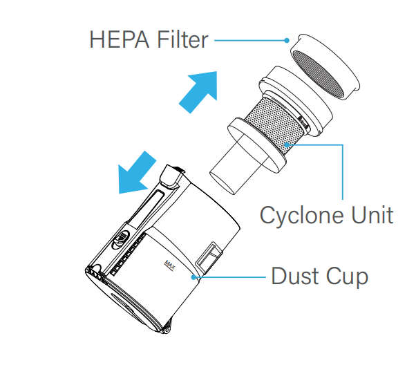9. Install Cyclone Unit and HEPA Filter into the Dust Cup.