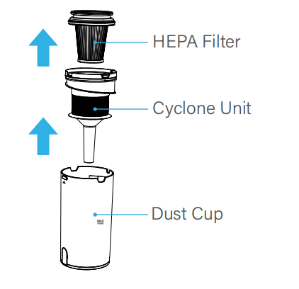 2. Take off the Cyclone Unit and HEPA Filter from the Dust Cup.
